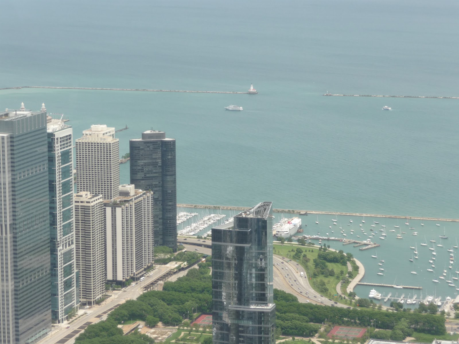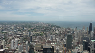 Last day of touristy stuff started out with thunderstorms, so wandered through shops (T-shirt collection grew again). Rain finally stopped so we ended up at Willis Tower (formerly Sears Tower) & went up to the